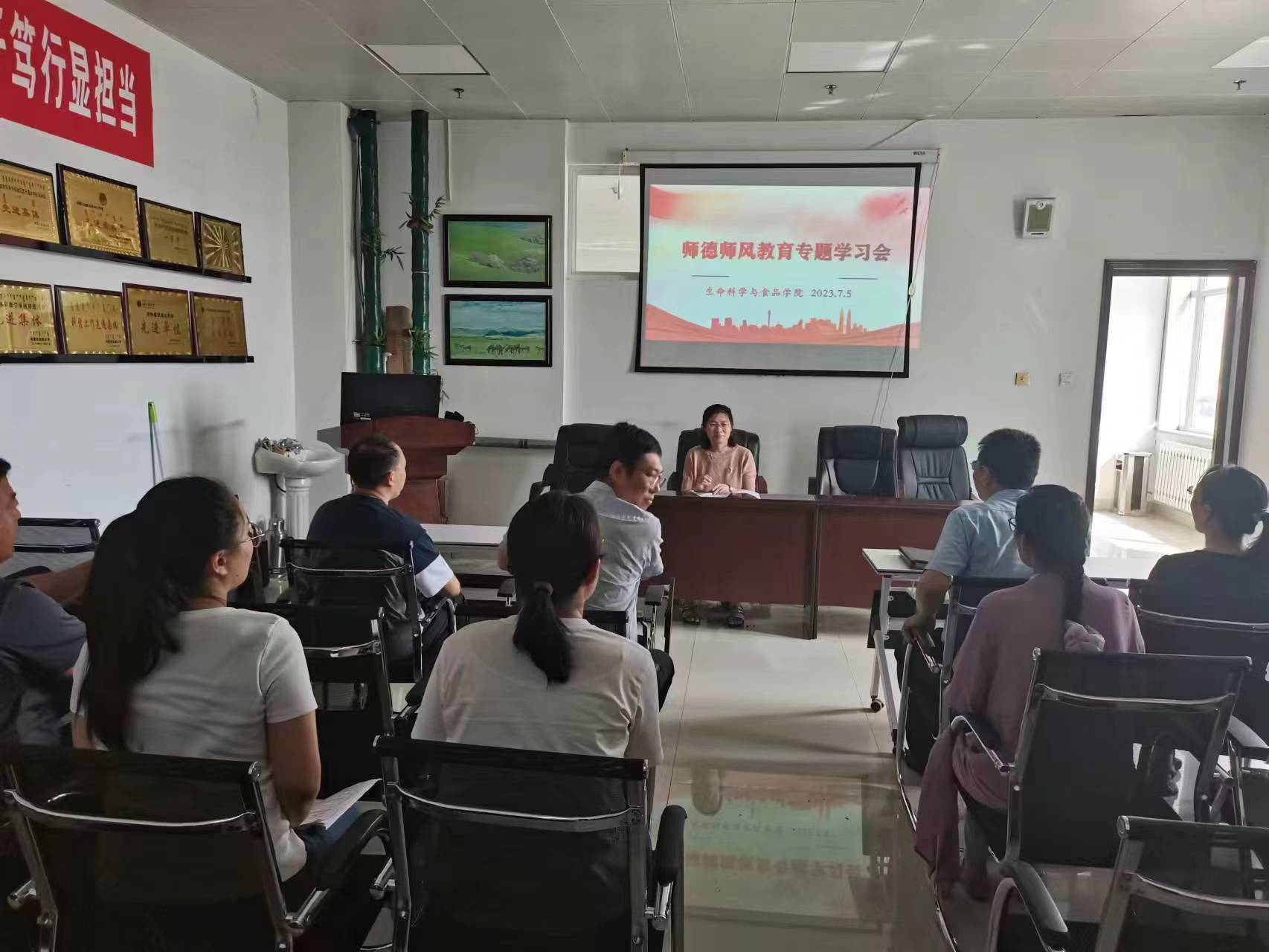 为深入学习贯彻党的二十大精神和习近平总书记关于教育的重要论述,作为学习贯彻习近平新时代中国特色社会主义思想主题教育的重要部分,生命科学与食品学院7月5日上午在实验楼1106会议室举行师德师风集中学习活动。学习活动由学院党委书记张继星主持,学院全体教师参加。