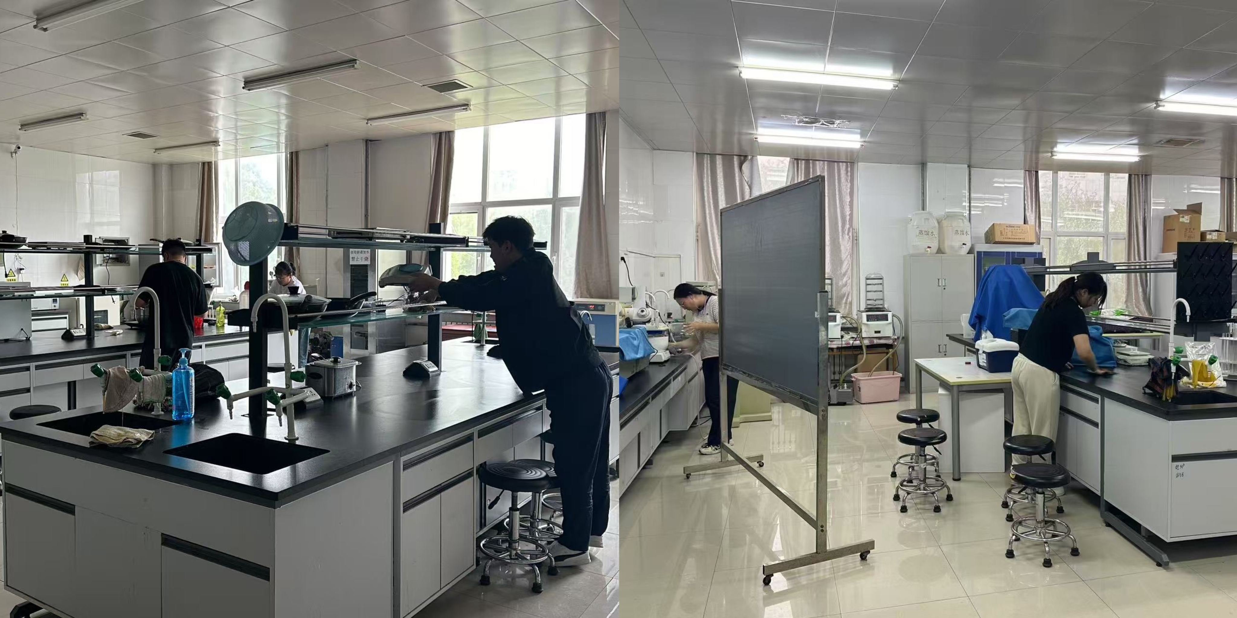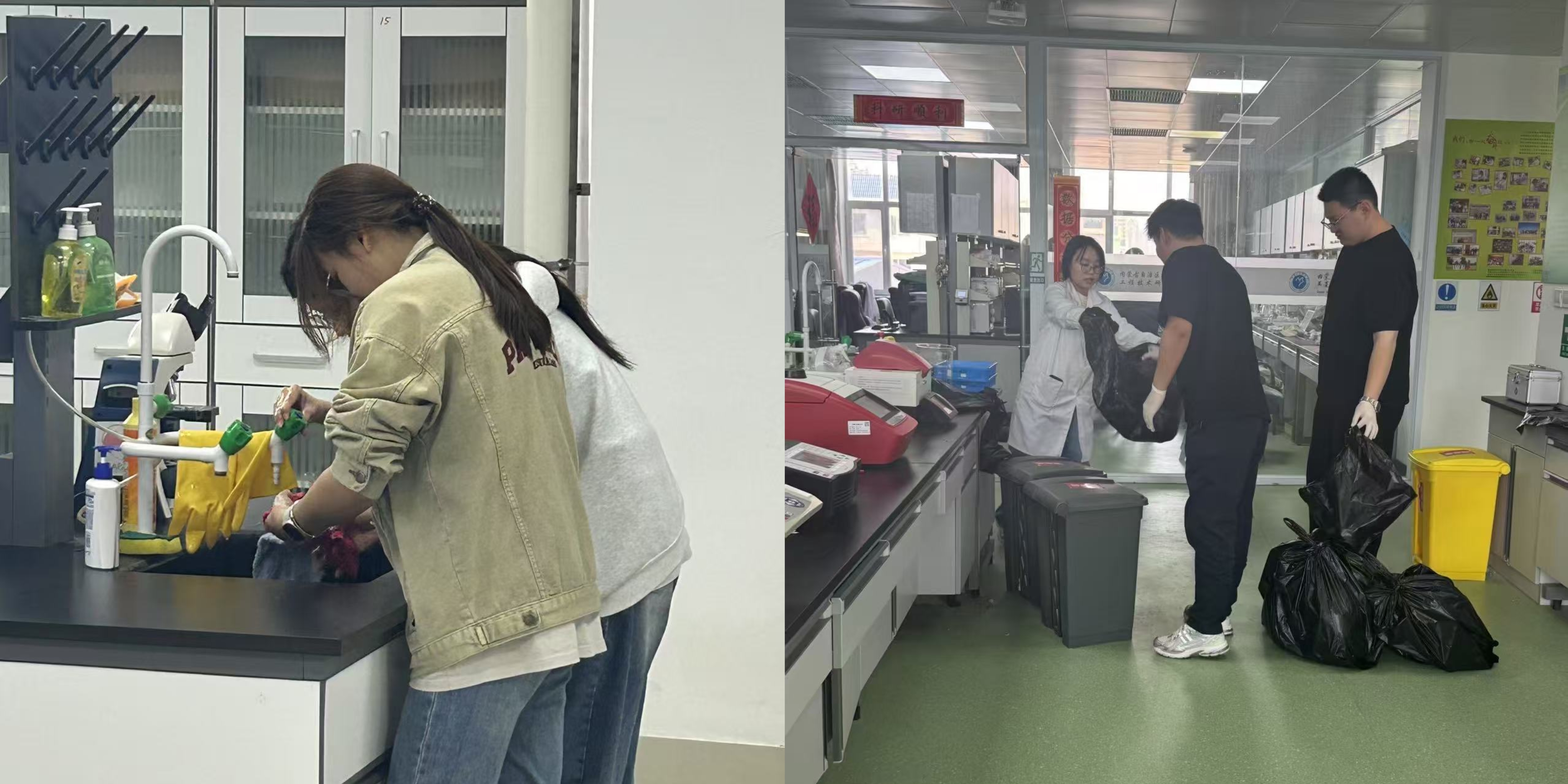 活动伊始,各实验室负责老师对志愿者进行了安全培训与任务分工,详细讲解了实验仪器的正确清洁方法、危险化学品的处理规范以及各区域清洁要点。志愿者以小组为单位投身于实验室的清洁工作中,有的志愿者手持清洁工具,负责擦拭实验台面、仪器设备,确保不留一处灰尘;有的志愿者负责实验室地面的清扫和消毒,让地面焕然一新;还有的志愿者负责对实验废弃物进行分类处理,通过整理试剂瓶和实验耗材,使实验室布局更加规整有序。经过一下午的共同努力,我院四十余间实验室焕发新颜。