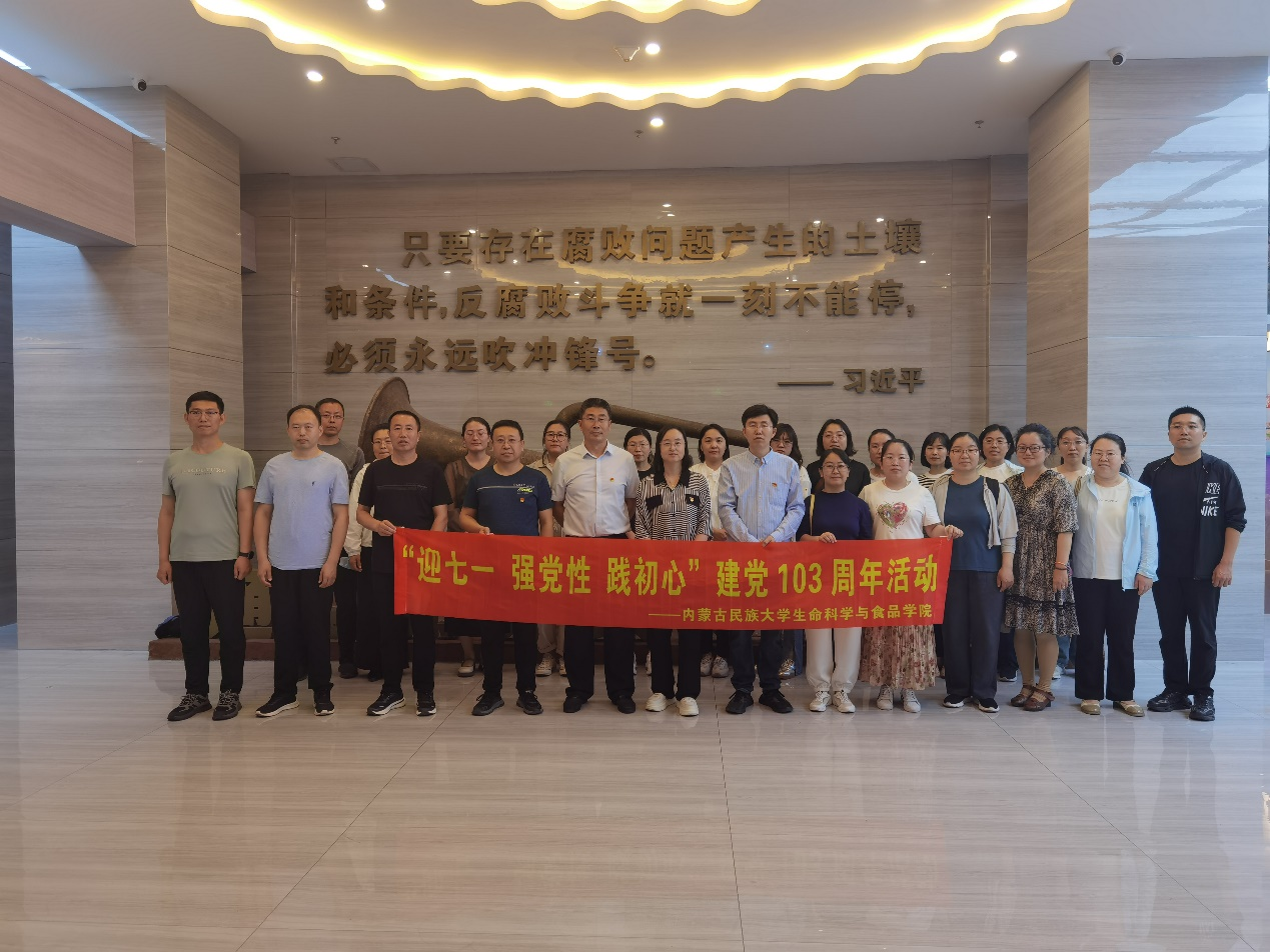 为扎实开展党纪学习教育,做好学纪、知纪、明纪、守纪,真正把纪律规矩转化为政治自觉、思想自觉、行动自觉,6月14日下午,生命科学与食品学院组织教师前往通辽市博物馆廉政教育基地开展“迎七一 强党性 践初心” 建党103周年活动。