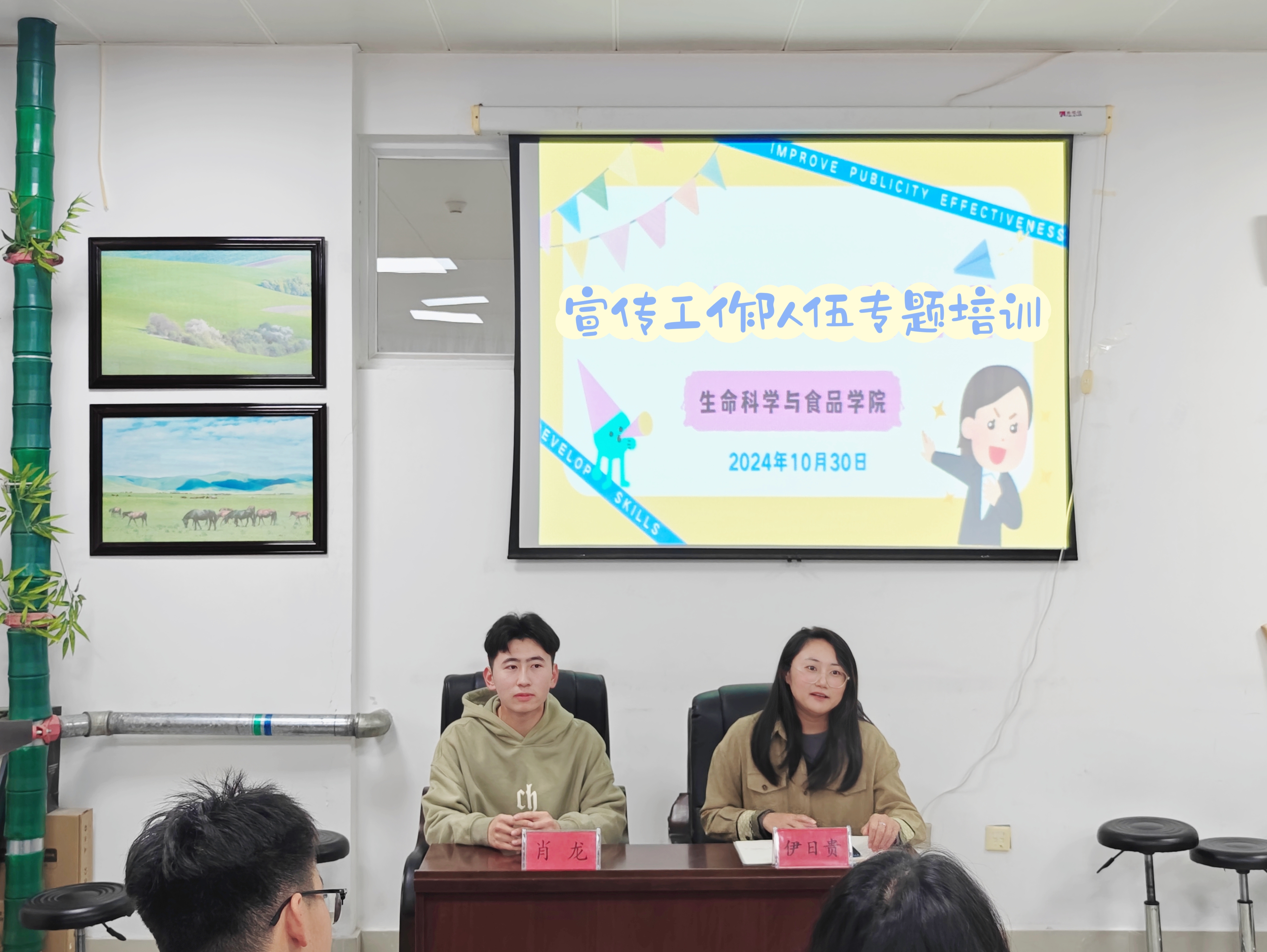 为了提高学院宣传工作队伍的综合素质,提升学院宣传工作的质量和效果,让宣传工作队伍成员掌握并提升实践操作技能,生命科学与食品学院于10月30日至11月6日,开展了宣传工作队伍专题培训。团总支书记伊日贵主持,由第十七届大学生记者团采编部部长肖龙和新媒体工作室负责人主讲,学院各团学组织宣传工作队伍负责人,23、24级各团支部书记和宣传委员参加培训。